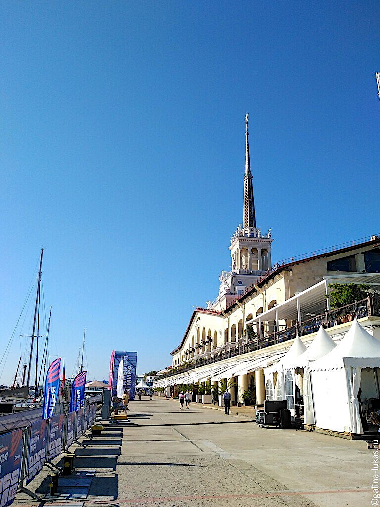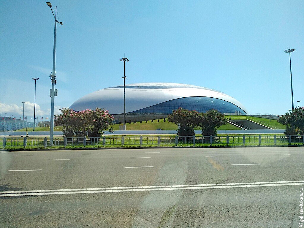 С нашим гидом мы проехали огромное расстояние, увидели стадион Фишт, ледовые дворцы Большой и Шайба, олимпийский парк, выходили на набережную. Ян старался останавливаться или, в случае невозможности остановки, проезжать максимально близко к достопримечательностям, о которых рассказывал. Безоблачное небо, жаркое солнце, маловетряная погода способствовали нашей прогулке.