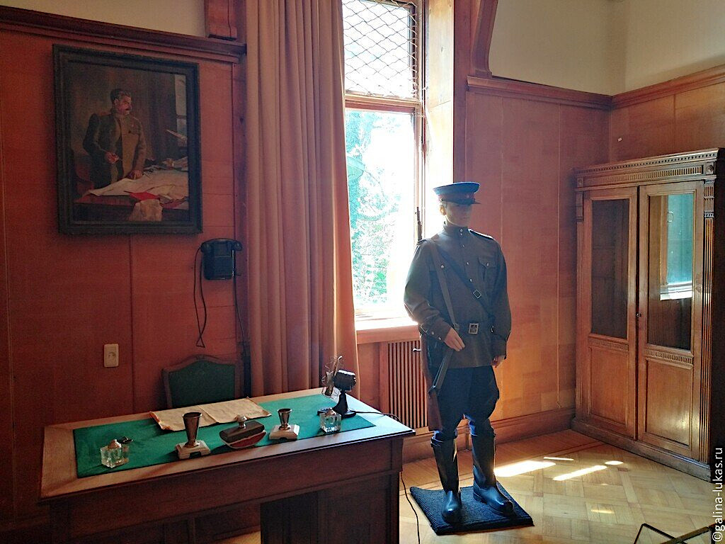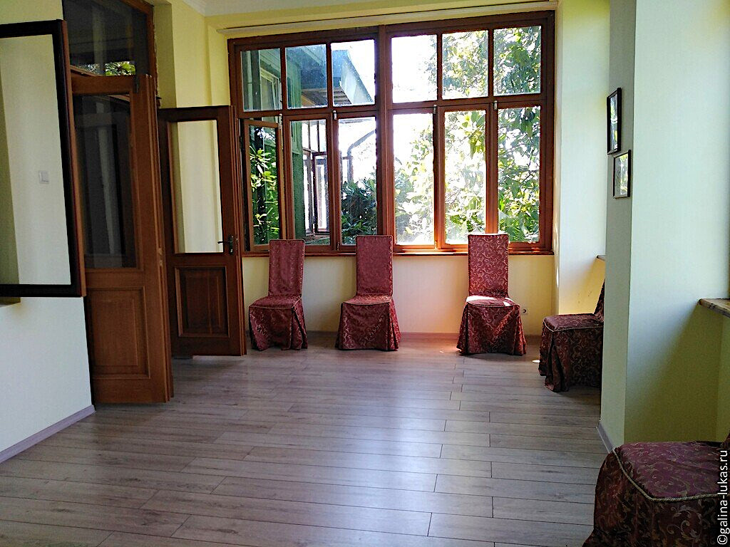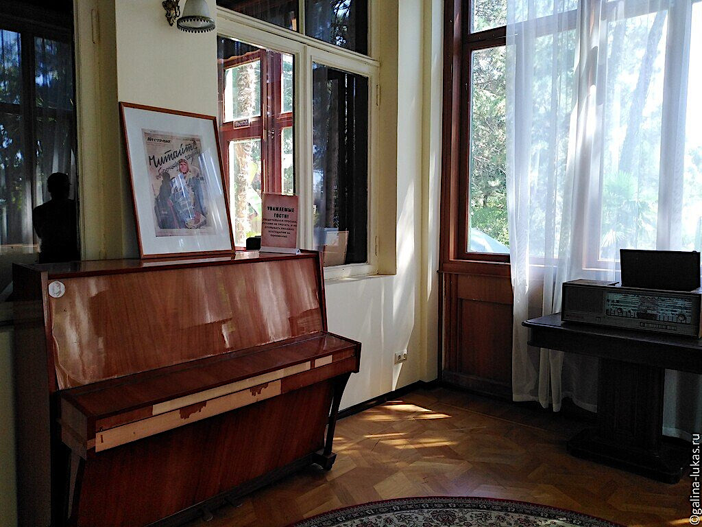 Узнав, что мы побывали на даче Сталина в Абхазии, и ни разу не были на даче в Сочи, предложил отвезти нас. Экскурсию нужно было ждать 40 минут. Мы не стали ждать, не хотели задерживаться и держать Яна на жаре, купили билеты и осмотрели комнаты дачи самостоятельно.